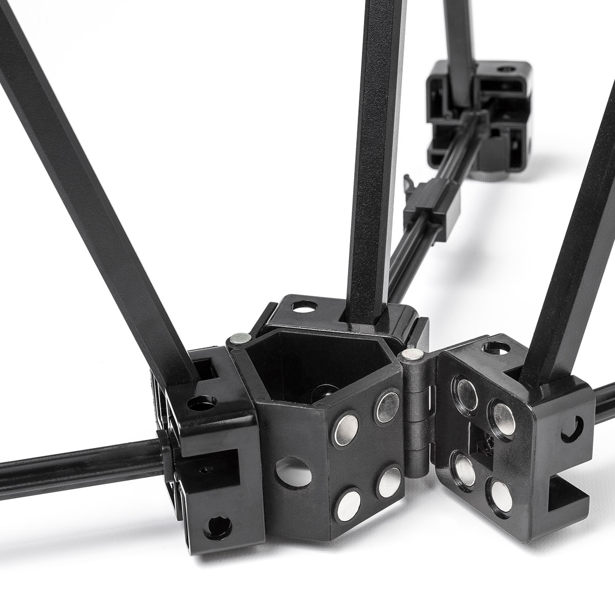 - mattschwarzer pulverbeschichteter Aluminiumrahmen mit patentierten Scharnieren und Magnetverriegelung
